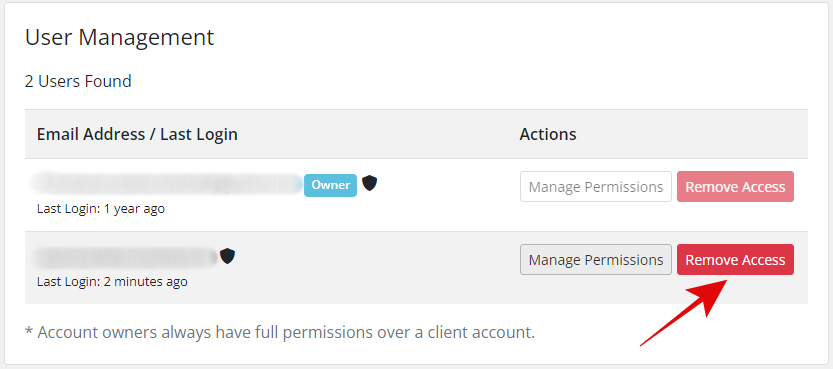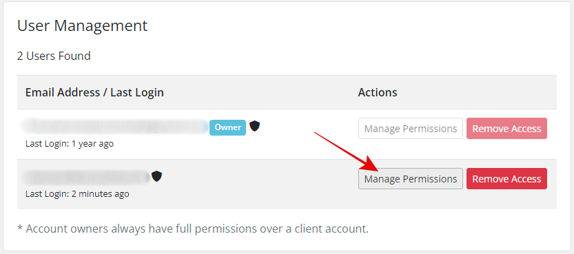 As an Account Owner, you can manage users and their permissions from the User Management section of the Client Area.