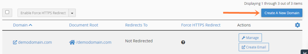 2) Click on the Create A New Domain button.